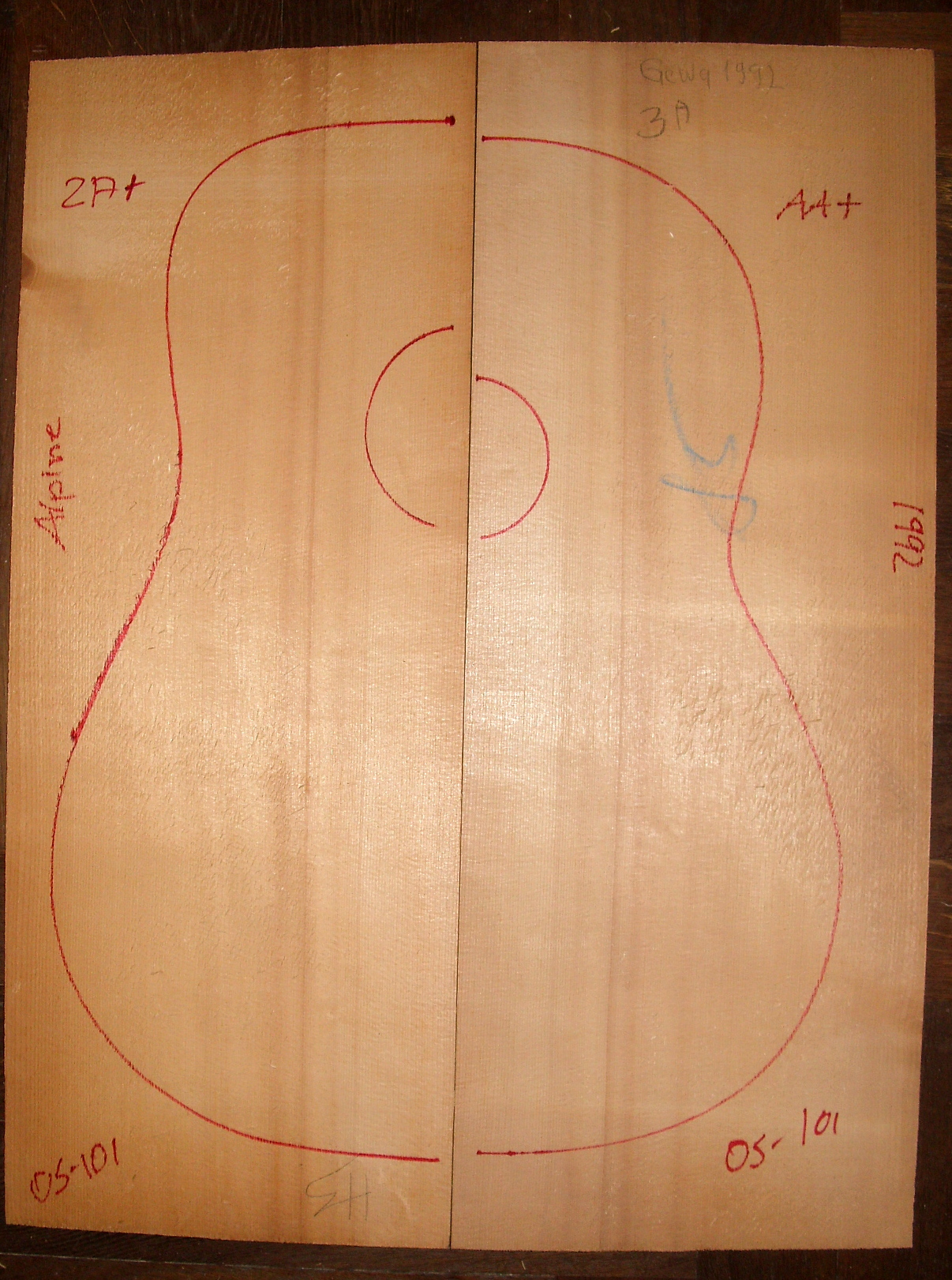 Occasionally we buy back old stock wood from retired luthier, here you go.
